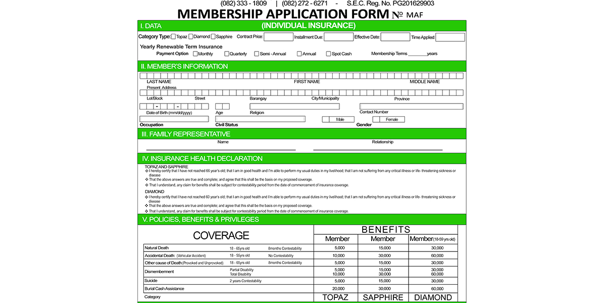 - Policy Type: Topaz/Sapphire/Diamond (Green Form) Zircon/Citrine/Pearl (Yellow Form)