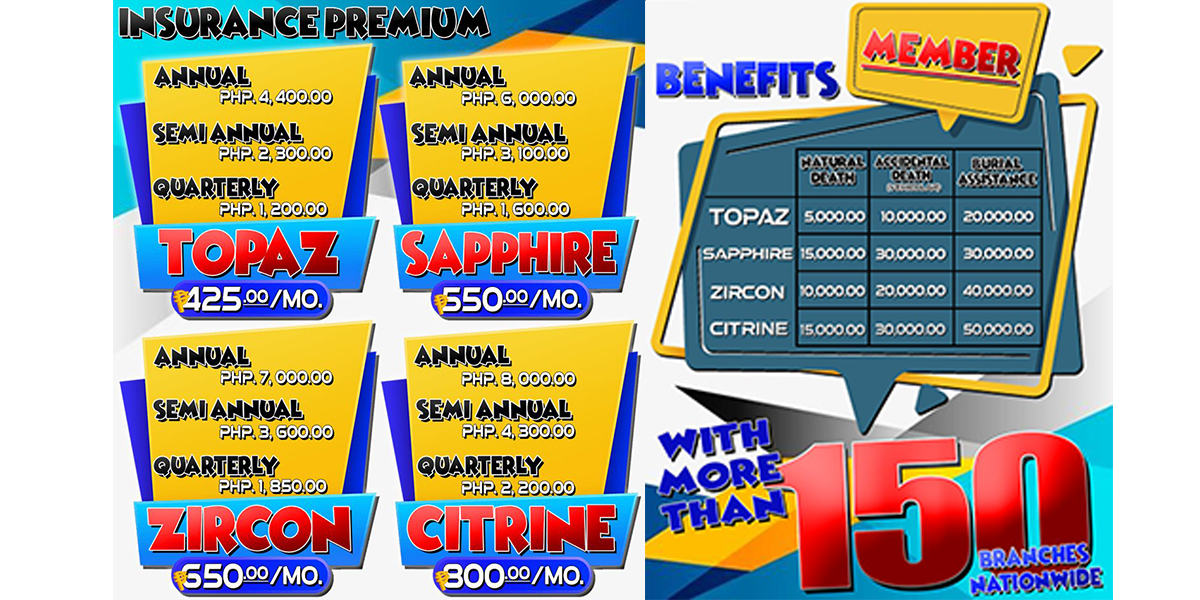 - Policy Amount / Month:425-Topaz/550-Sapphire/1,900-Diamond 650-Zircon/700-Citrine/1260-Pearl